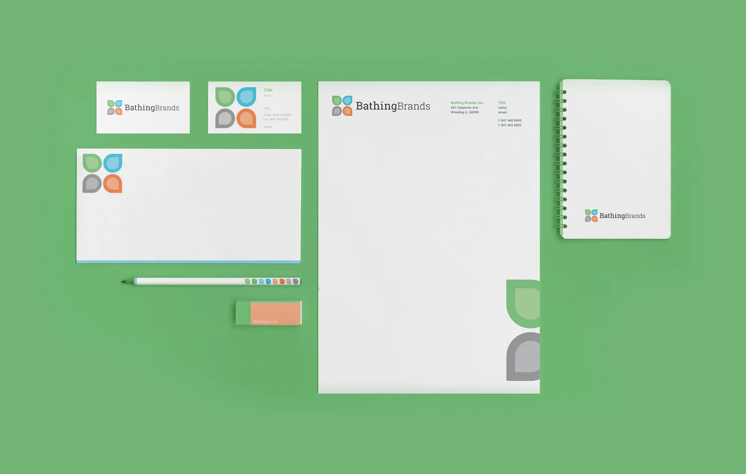 Complete logo and brand identity redesign for the Chicago based company Bathing Brands, Inc. Bathing Brands, Inc. is the mother brand to some of the nation's leading commercial and residential steam and sauna room part suppliers. We also build custom steam and sauna environments and promote wellness through our passion for bathing.